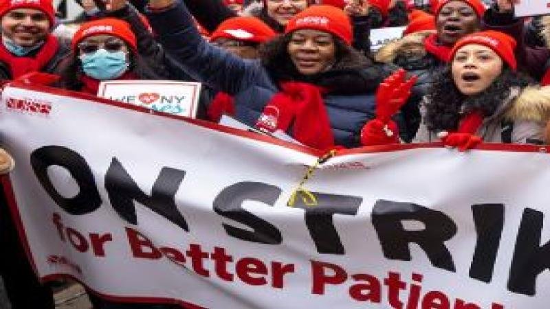 نیویارک(رم نیوز)امریکہ کے شہر نیو یارک میں نرسز کی سب سے بڑی ہڑتال دوسرے ہفتے بھی جاری ہے۔ غیر ملکی خبر ایجنسی کے مطابق شدید سردی کے باوجود 15 ہزار سے زائد نرسز آٹھویں روز بھی اپنے مطالبات کے حق میں احتجاج کر رہی ہیں۔ نرسز ایسوسی ایشن اور ہسپتال انتظامیہ کے درمیان مذاکرات تاحال کامیاب نہیں ہو سکے، جبکہ نرسز عملے کے بہتر تناسب، محفوظ ماحول اور طبی سہولیات کا مطالبہ کر رہی ہیں۔